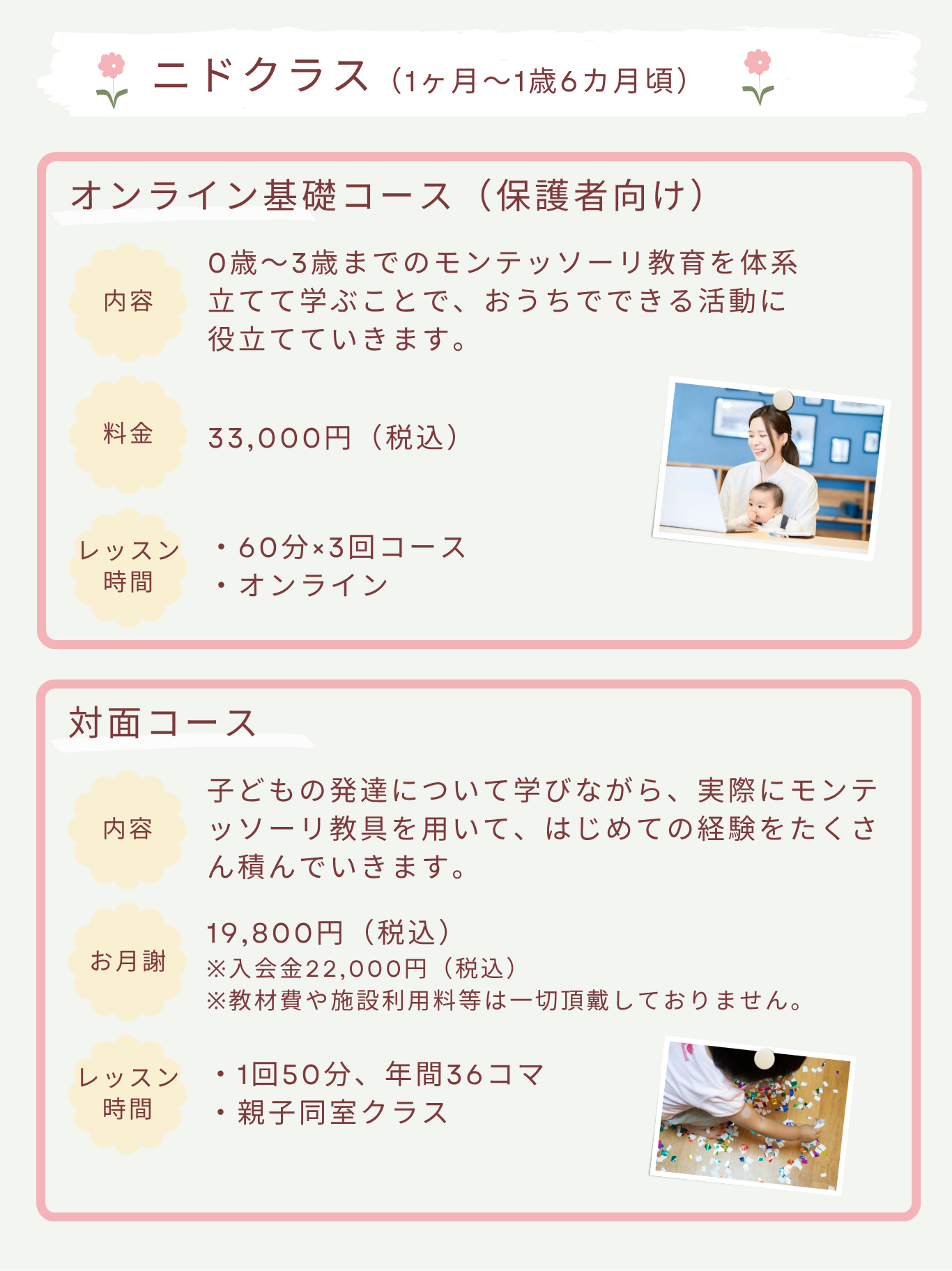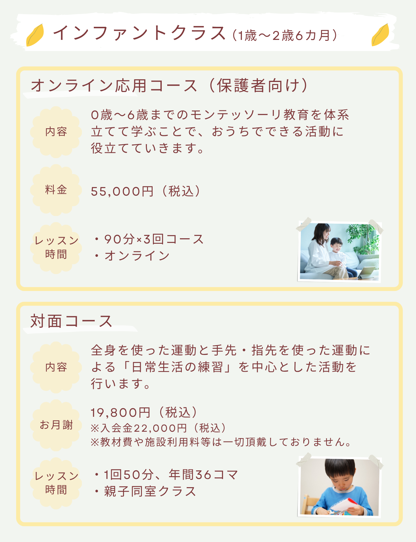 インファント・トドラー(親子分離クラス)のみ