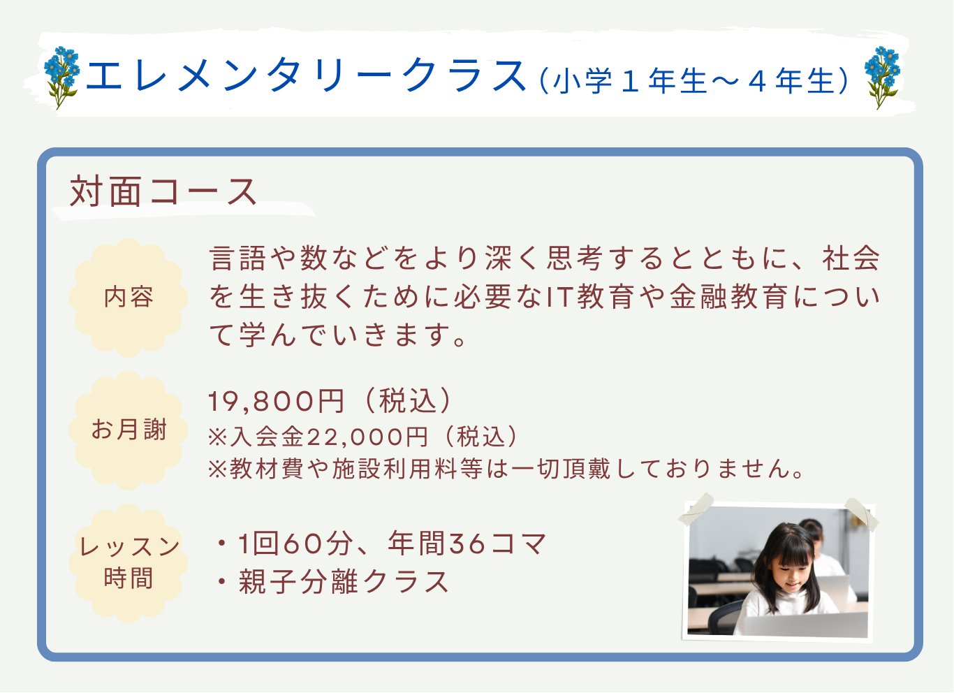 ※レッスン時間については、個別にお問い合わせください。